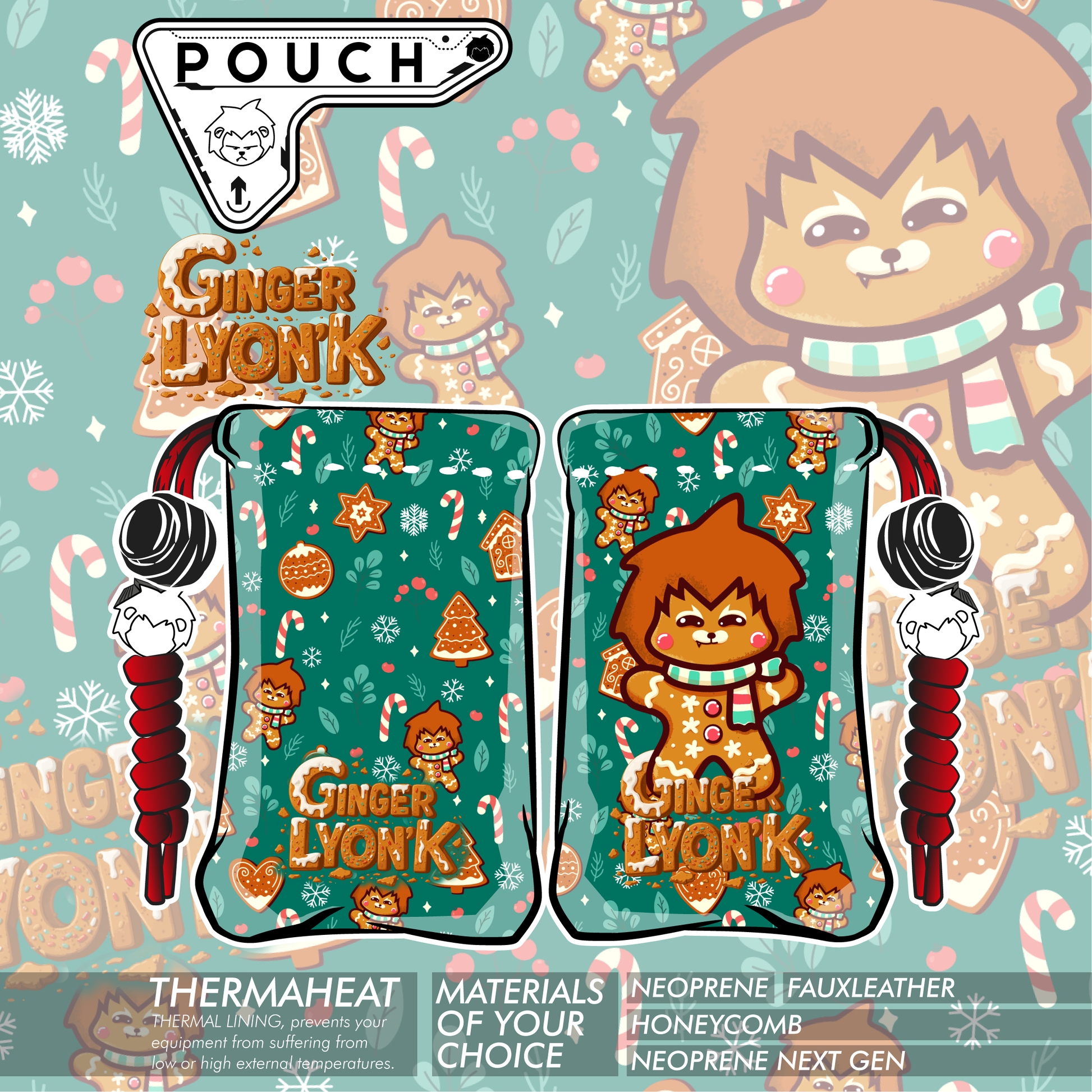 Neoprene fabric pouch - 3mm High density - Fluorescent Lyonk Ornament Printed on Paracord - Extra Padding is added -ThermaHeat Thermal Lining is added.
